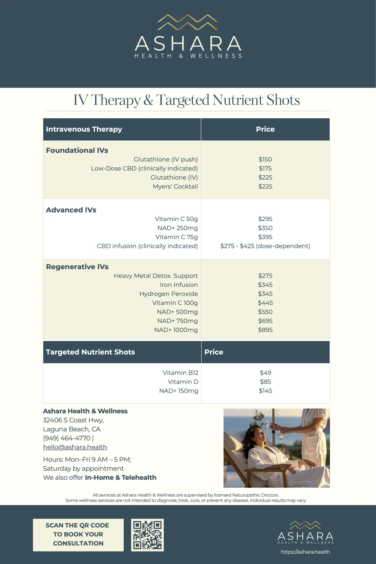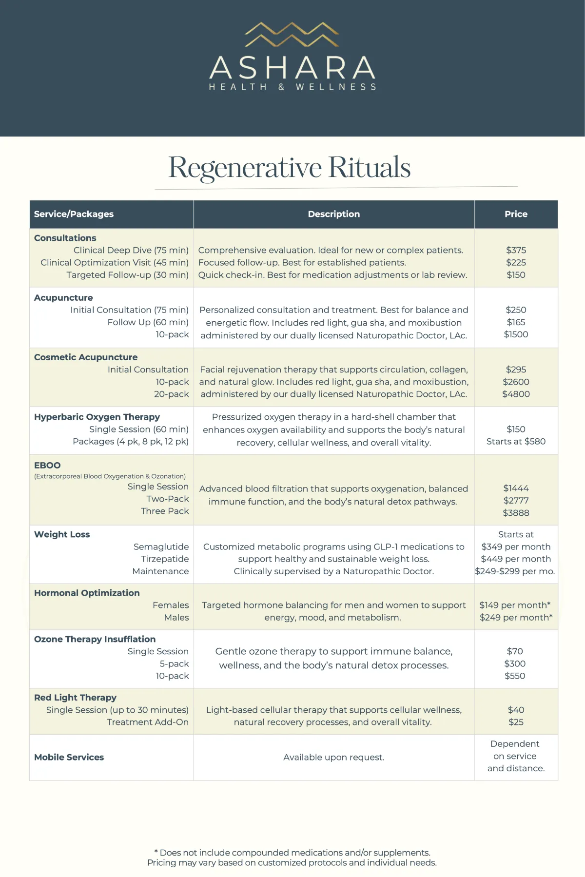 “Ashara Health has been such a lucky find in Laguna. I was looking for a whole-body form of care for my thyroid and hormonal challenges, and I found it with Blue Aura. Dr. Klea really listens to your concerns, and uses her extensive knowledge to come up with a plan that suits your needs, availability, and budget. All of the other practitioners here are very kind and helpful, as well as the front desk staff. I recommend looking into their monthly plans, as you get a lot of perks including weekly hyperbaric oxygen chamber sessions and some red light therapy. They genuinely care here at Ashara Health, and it shows.”